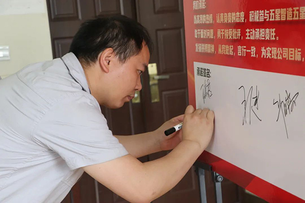 儀式尾聲,總經理盧漫宇與生產管理負責人李杰峰為不同維度的負責人頒發了任命書,全體與會人員和項目組老師共同宣誓,為項目貫徹執行鄭重承諾,也為自身素養提升和公司前行發展立定目標,相信在五星智造項目的加持下,航宇科技的高質量發展之路會如虎添翼,人才培育工作事半功倍。