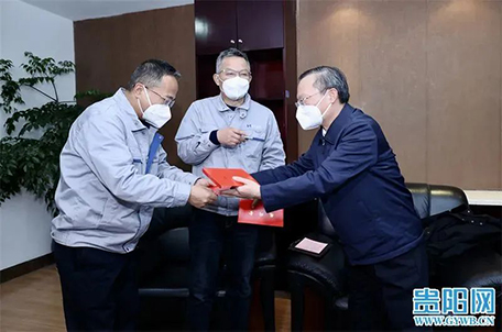 1月4日,在新春佳節即將來臨之際,省委常委、市委書記胡忠雄來到貴州航宇科技發展股份有限公司,走訪慰問專家人才,代表市委、市政府向他們并通過他們向貴陽貴安各行業領域專家人才致以誠摯問候和新春祝福。